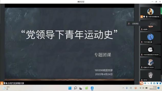 200202团支部与腾讯会议的方式举行了“党领导下青年运动的百年历程”主题团课。