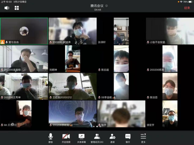 2022年3月26日中午12点30分,研190204团支部通过腾讯会议的方式开展了“同心抗疫,感恩有你”主题团日活动,在疫情时期,团支书江帅呼吁大家,全面增强防范意识,科学自我防护,切实提高政治站位,强化责任担当,认真对待线上学习,按时完成学习任务,众志成城,共克时艰。