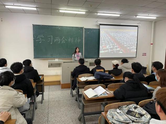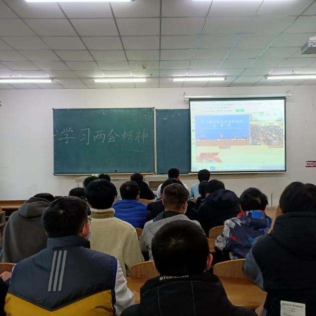 2022年3月7日,200202班团支部在教学主楼1509教室集体观看两会开幕式。为响应疫情防控要求观看全程佩戴口罩。