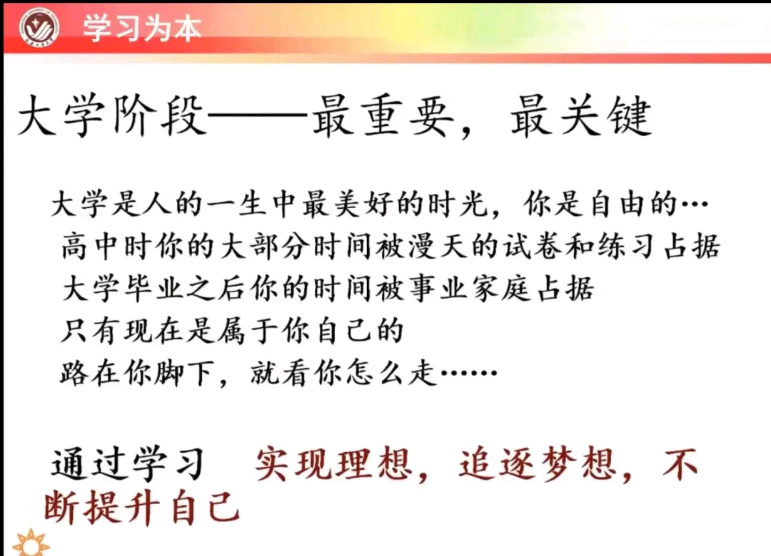 大学是人生中第一次重要的抉择,这意味着以后我们将独立面对自己的学习和生活道路。希望大家在大学里找到适合自己的道路,尽情绽放自己的光芒。