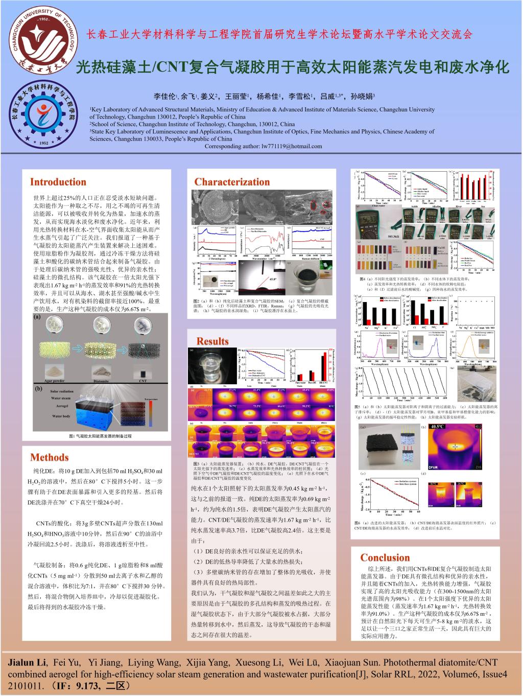 光热硅藻土CNT复合气凝胶用于高效太阳能蒸汽发电和废水净化-高清无码 首届研究生学术论坛暨高水平学术论文交流会