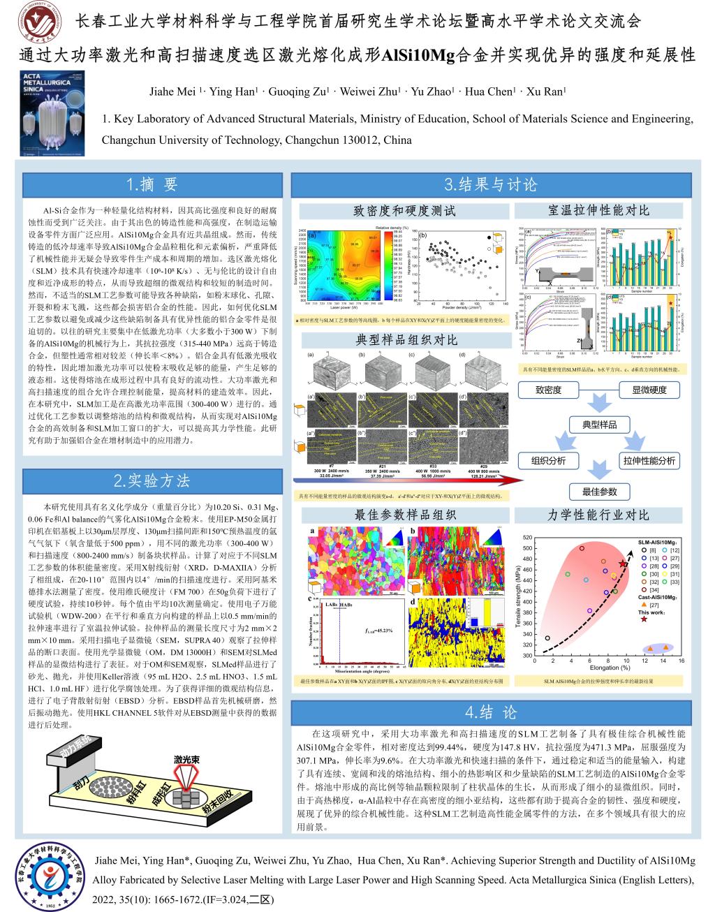 通过大功率激光和高扫描速度选区激光熔化成形AlSi10Mg合金并实现优异的强度和延展性-高清无码 首届研究生学术论坛暨高水平学术论文交流会
