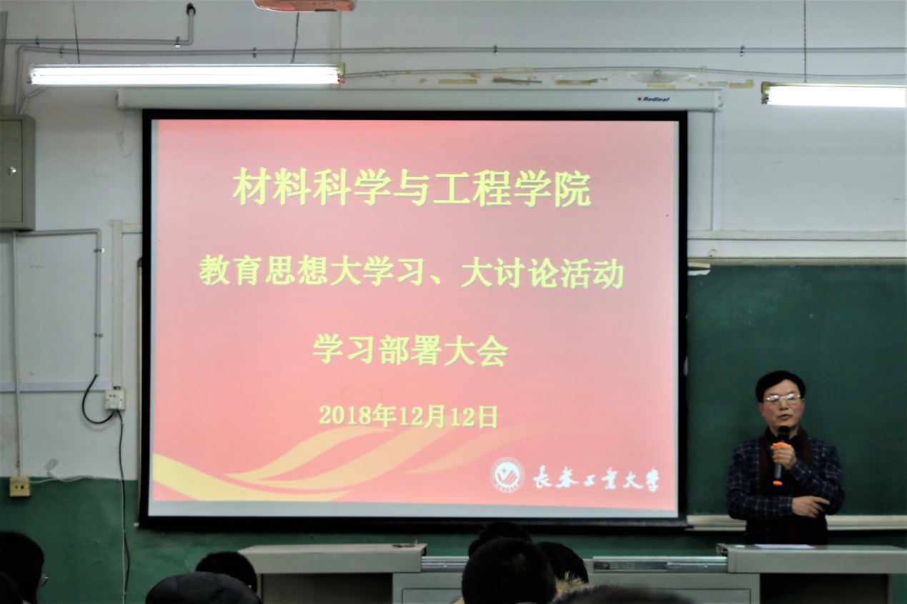 在材料楼302教室举行了教育思想大学习、大讨论活动。副校长李占国,教学质量监控与评价中心副主任张志强应邀出席了活动。此次活动由材料学院党委书记兰民主持。