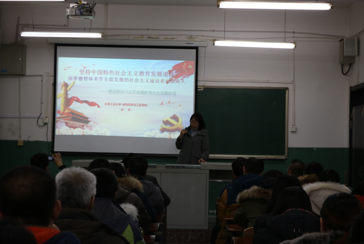首先,兰民代表我院对李占国副校长和张志强副主任的亲临表示欢迎和感谢。学院院长冉旭向参会人员汇报了学习习近平总书记在全国教育大会上的讲话的心得体会,以教育者独特的视角对报告内容进行了解读。