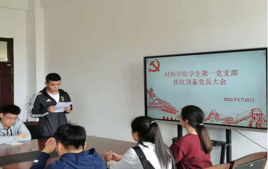 学生第一党支部于材料楼425会议室召开预备党员接收大会。本次大会由支部书记李爽主持,支部全体党员参会,参会人员共34人。