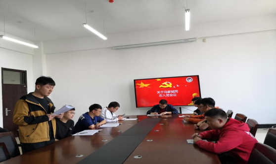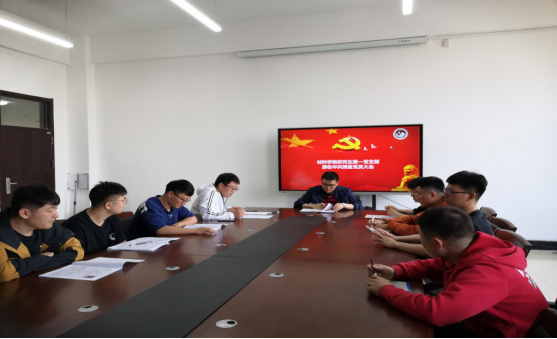 研究生第一党支部于材料楼四楼会议室召开预备党员接收大会。本次大会由党支部书记祖国庆主持,对冯家铖等三名发展对象接收为预备党员进行讨论和表决。