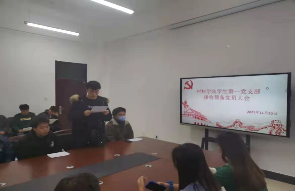 学生第一党支部于材料楼425会议室召开接收预备党员大会。本次大会由支部书记李爽主持,支部全体党员参会。