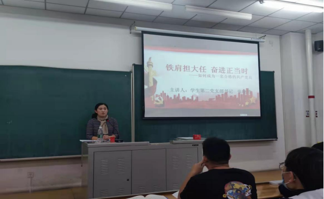 李爽老师就“建党一百年的四个历史时期”为主题开展党课培训,一百年来,中国共产党弘扬伟大建党精神,在长期奋斗中构建起中国共产党人的精神谱系,锤炼出鲜明的政治品格。并以各个时期的优秀人物的先进事迹教育同学们要积极发挥模范带头作用,不惜牺牲个人的一切,为共产主义奋斗终身,要有光明正大的作风和大公无私的气节,树立和保持共产党员的浩然之气。
