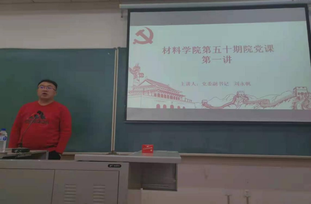 材院网讯(通讯员 张晓君)材料科学与工程学院第50期党课学员在北湖校区进行党课培训,于2020年12月7日在教学主楼1216教室开展开班仪式。12月7日、8日、13日党委书记刘永帆,第二党支部书记张晓君以及第一党支部书记李爽分别对本期北湖学员讲授党课。此次党课培训围绕教育如何做一名合格的大学生党员及学习发挥先锋模范作用,使党员同学们奋进正当时,更加深刻的领悟党的思想。