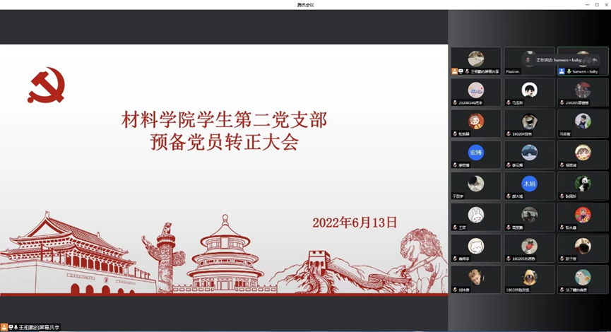学生第一党支部、第二党支部于腾讯会议线上召开转正大会。学生党支部支部全体党员及预备党员参加。会议由学生第一党支部书记李爽、学生第二党支部书记张晓君主持,对需要转正的同志是否能如期转正进行讨论和表决。