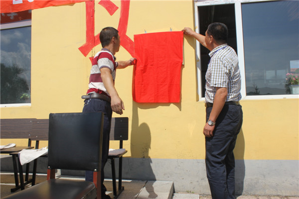大会第一项,升国旗,由志愿者及富强小学学生组成的护旗手共同完成升旗仪式,两校领导师生庄严肃立,向国旗致敬。在启动仪式的第二项,夏天民和周建飞举行隆重的揭牌仪式,这代表着高清无码