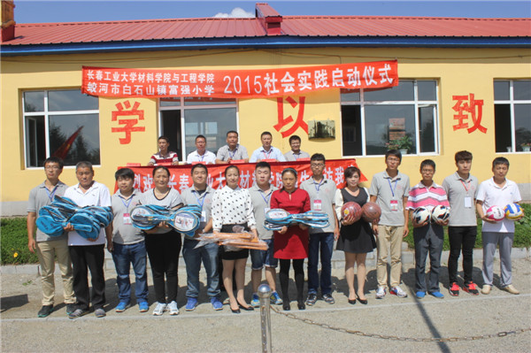 材料学院党委领导前期前往蛟河市白石山镇富强小学考察,了解到此地地处偏远、交通不便,缺少教学用具及体育用品。了解情况后,学院开展动员大会,因此由学生会主席付强领头学院学生干部组成的志愿者团队形成,大家精心采购物资,排练为小学生表演的节目,为下乡支教做好准备。