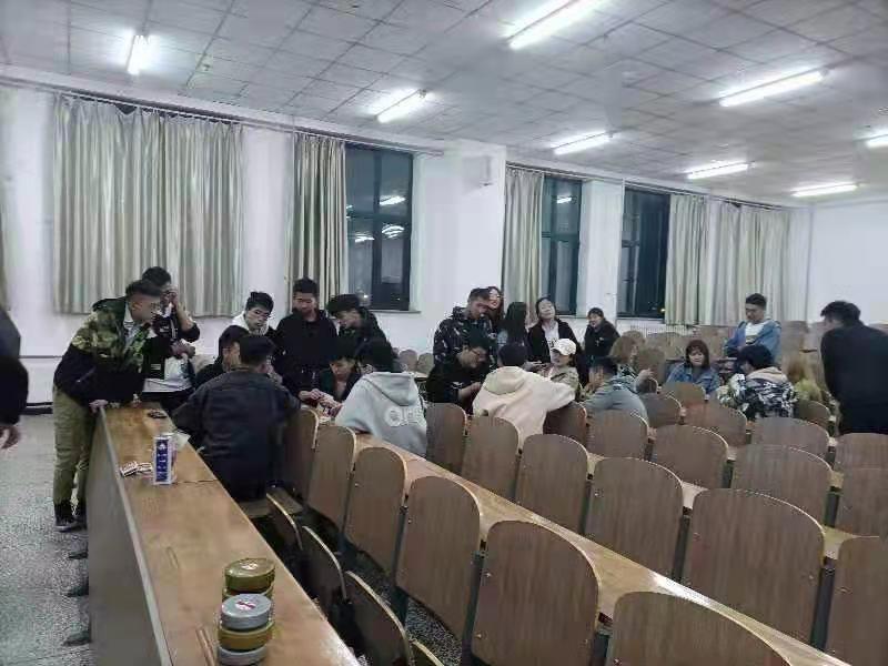 首先由体育部学长宣读比赛细则,并让选手抽签分组。比赛采用回合积分制斗地主7个班共21人参赛,刨幺共12人参赛。同学们斗志昂扬,磨拳擦掌。第一轮比赛结束,五子棋共6人晋级,跳棋共6人晋级,斗地主共6人晋级,刨幺共4个班级,象棋3人。