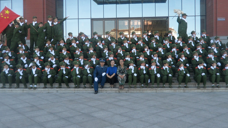 党委副书记王颖群、教官靳枫、辅导员助理孙诗涵与同学们合影