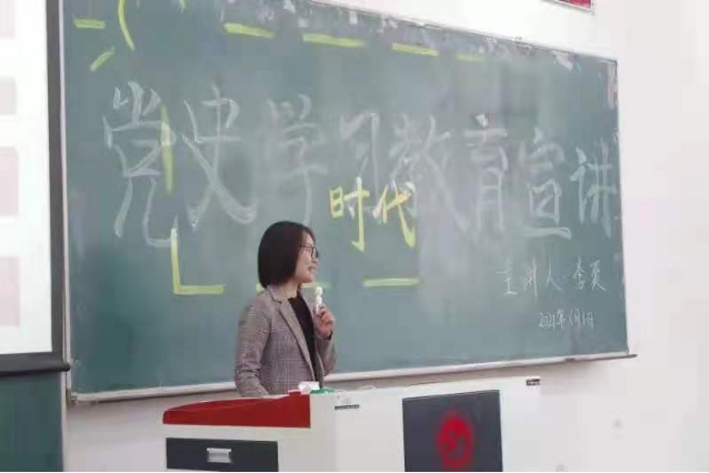 团委于2021年6月1日在北湖西区东阶201教室,举行党史学习教育宣讲,此次党课由第一党支部书记李爽主讲,20级全体同学参加。