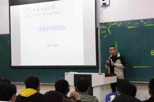 刘鑫博士介绍了比赛的大致流程,以自己的亲身经历倾囊以教,前人挖井,后人吃水。每个细节都无微不至。为我们讲述了如何完成申报书,从作品设计、发明的目的和基本思路、创新点开始,作品的先进性以及作品在何时、何地、何种机构举行的评审、鉴定、评比、展示等活动中获奖及鉴定结果都做了精要的概述。并为我们介绍比赛ppt,ppt同样是最为核心的一环,学长的建议是准备两份不同的ppt,以万全之策应对评委审核,要注意临危不乱,在冷静的状态下不失体面,不失学校风采的回答讲解。