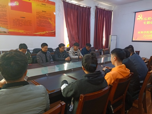 本网讯(通讯员张晓君)2019年11月2日,材料学院第二学生党支部在五楼会议室召开了“不忘初心牢记使命”专题教育学习会,会议内容为学习习近平总书记在“不忘初心牢记使命”主题教育会议上的讲话。参会人员为高清无码
