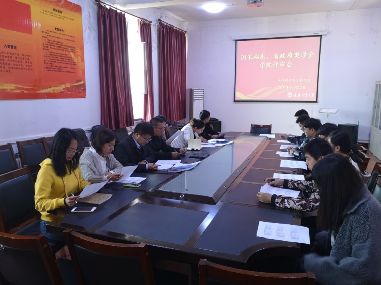 本专科国家奖助学金管理办法》的要求,我院于10月22日在材料学院五楼会议室对16、17、18级学生进行国家励志奖学金和省政府奖学金的评选,本次评定工作会议由2017级辅导员张晓君主持。