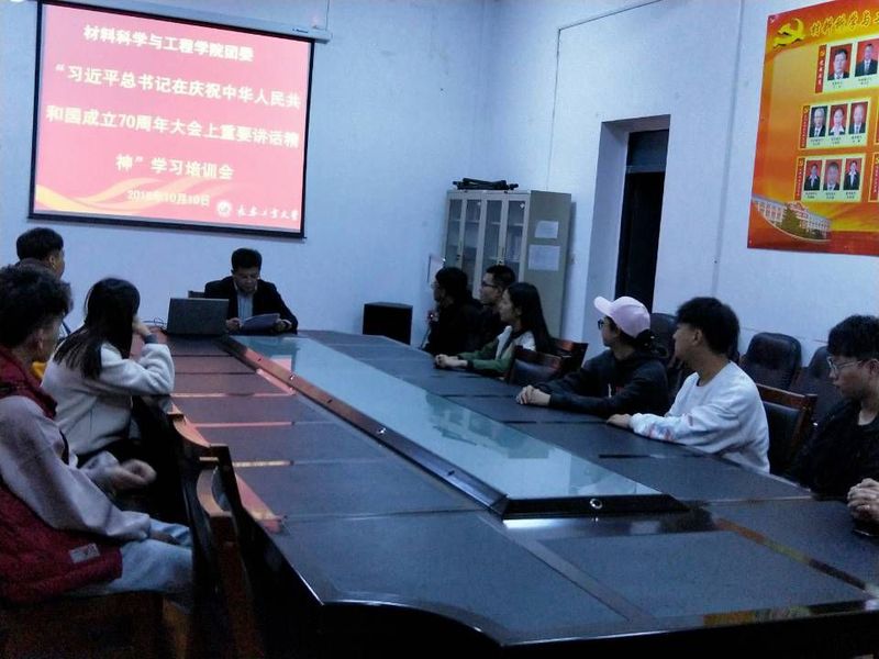 本网讯(通讯员万杨)为进一步加强广大青年学生的思想引领工作,深入学习习总书记在庆祝中华人民共和国成立七十周年大会上的重要讲话精神,材料学院团委于2019年10月11日分别从学院及班级两个层面组织开展交流学习活动。