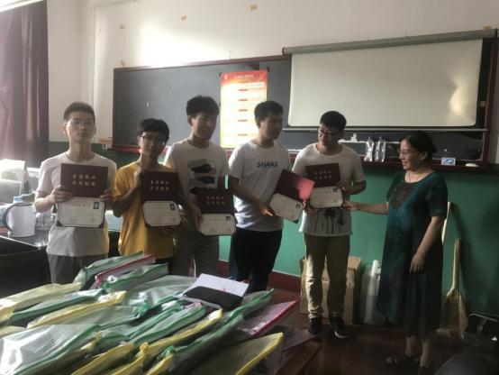 26日晚,学院学生工作办公室全体成员将每一名毕业生的各种证件认真核对后装入档案袋中,按照班级顺序整理出来。27日早6时开始交给学院的系主任手中,7时毕业生们陆续来到自己所在的系主任处领取自己的四年“战果”,与老师们紧紧拥抱表达对老师们的依依不舍之情,给老师们深深鞠躬表达对老师们的敬爱之情,和老师们亲密合影表达对老师们的思念之情……