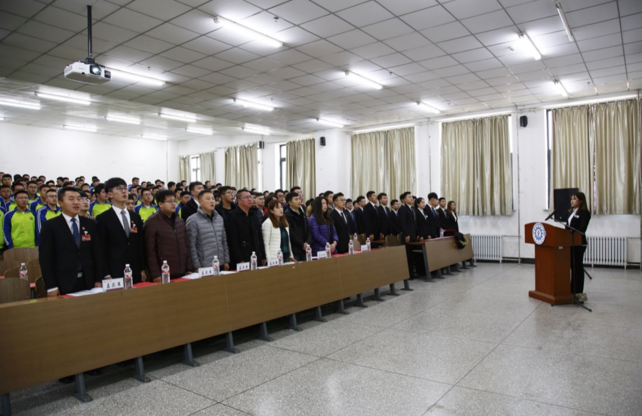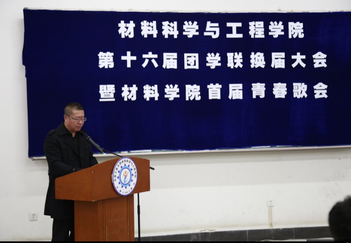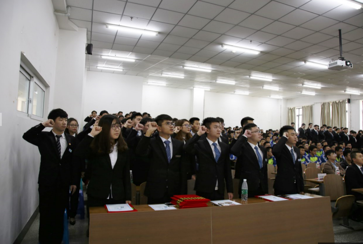随后,在团委组织部长王硕的带领下,全体新任学生干部庄严宣誓。最后,学院党委副书记吴文东致辞,他代表学院党委与学工办对新一届学生组织的成立表示祝贺,同时对学生干部提出希望与要求,他希望刚刚上任的新一届团学干部能够继承和发扬学院现有的优良传统,不断创新工作模式,不断改进工作方法,不断拓宽工作思维,他强调学生干部一定不要忘记自己加入学生组织和担任学生干部的初心,通过不断的强化自身建设,牢记为同学们服务、为学院服务、为学校服务的使命,精诚团结,为材料学院学团工作迈上新台阶做出应有的贡献。