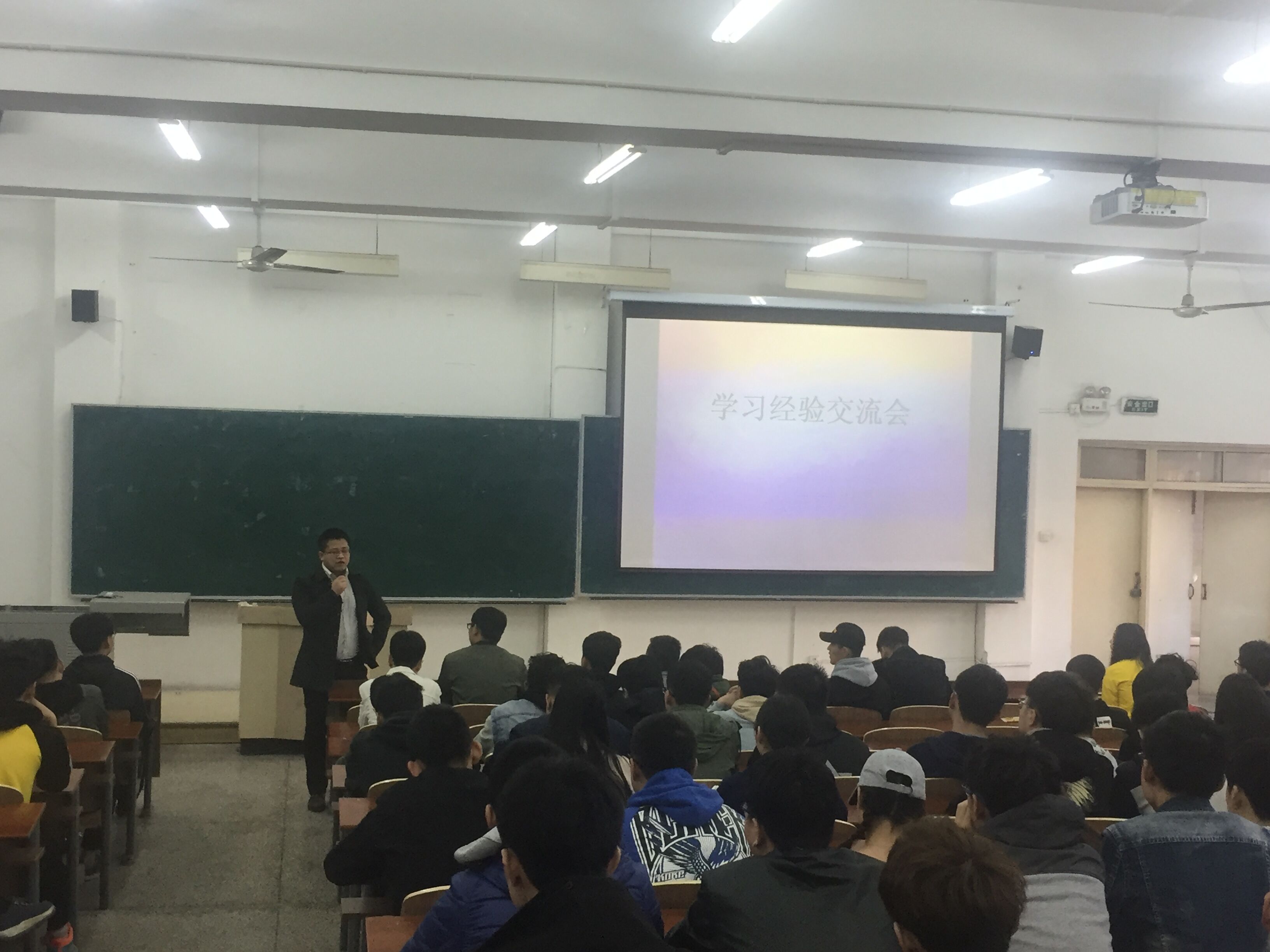 于南湖校区综合一阶梯教室举办了优秀学生学习经验交流会。材料学院团委书记,学生辅导员万杨特邀14级优秀毕业生代表张一波,14级优秀学生代表化雨与16级全体学生交流学习经验。交流会由万杨主持。