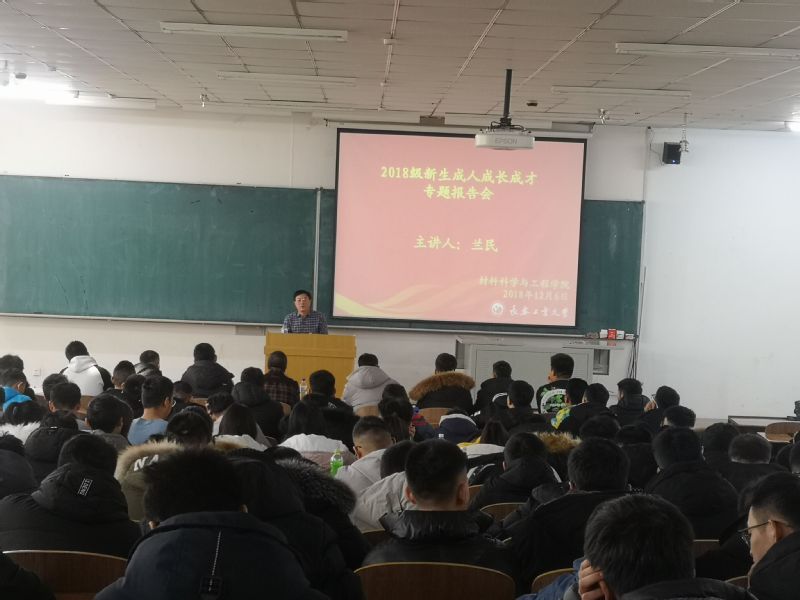 党委书记兰民莅临北湖校区,于西阶302召开《2018级新生成人成才成长专题报告》。党委副书记吴文东,18级辅导员助理魏军虎出席会议,材料学院18级全体同学参加报告会。