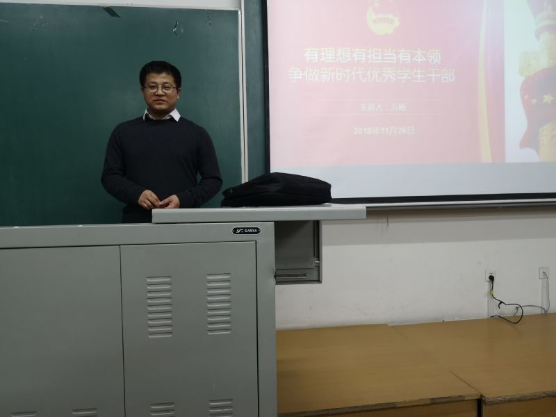 此次培训通过四个部分向全体学生干部传达了学生干部精神。万老师首先介绍了学生干部是学校思想教育和行政管理的第三方面军,并强调学生干部是不可或缺的一部分,每一个学生干部应做好自己,做好学生的榜样。然后又讲述了学生干部应具备的“五个意识”,要具备较强的学习意识,学生干部,先是学生后是干部,学生的主要任务就是学习,每一个学生干部应该珍惜时光,处理好学习与工作;要具有较强的服务意识,每一个学生干部应不忘初心,牢记使命,为同学服务;要具备坚定的纪律意识,上课秩序,寝室卫生,考风考纪等,每一个学生干部应该自觉遵守,做好典范;要具备较强的责任意识,在其位谋其政,一个优秀的学生干部不仅仅是传达老师的话,更重要的是自觉组织学生学习,积极参加活动;最后要具备良好的形象意识,最基本的仪表,仪态举止,言谈都要做到最好,拥有良好的精神面貌。紧接着万老师又介绍学生干部应具备的工作能力。要具备较强的执行能力,有工作责任心;要不断提升自己的表达能力;要注意培养自己的创新能力;要积极主动开展工作;要培养自己的团队合作能力。最后针对历届存在的问题,提醒新一届学生干部扬长避短,虚心为同学服务。