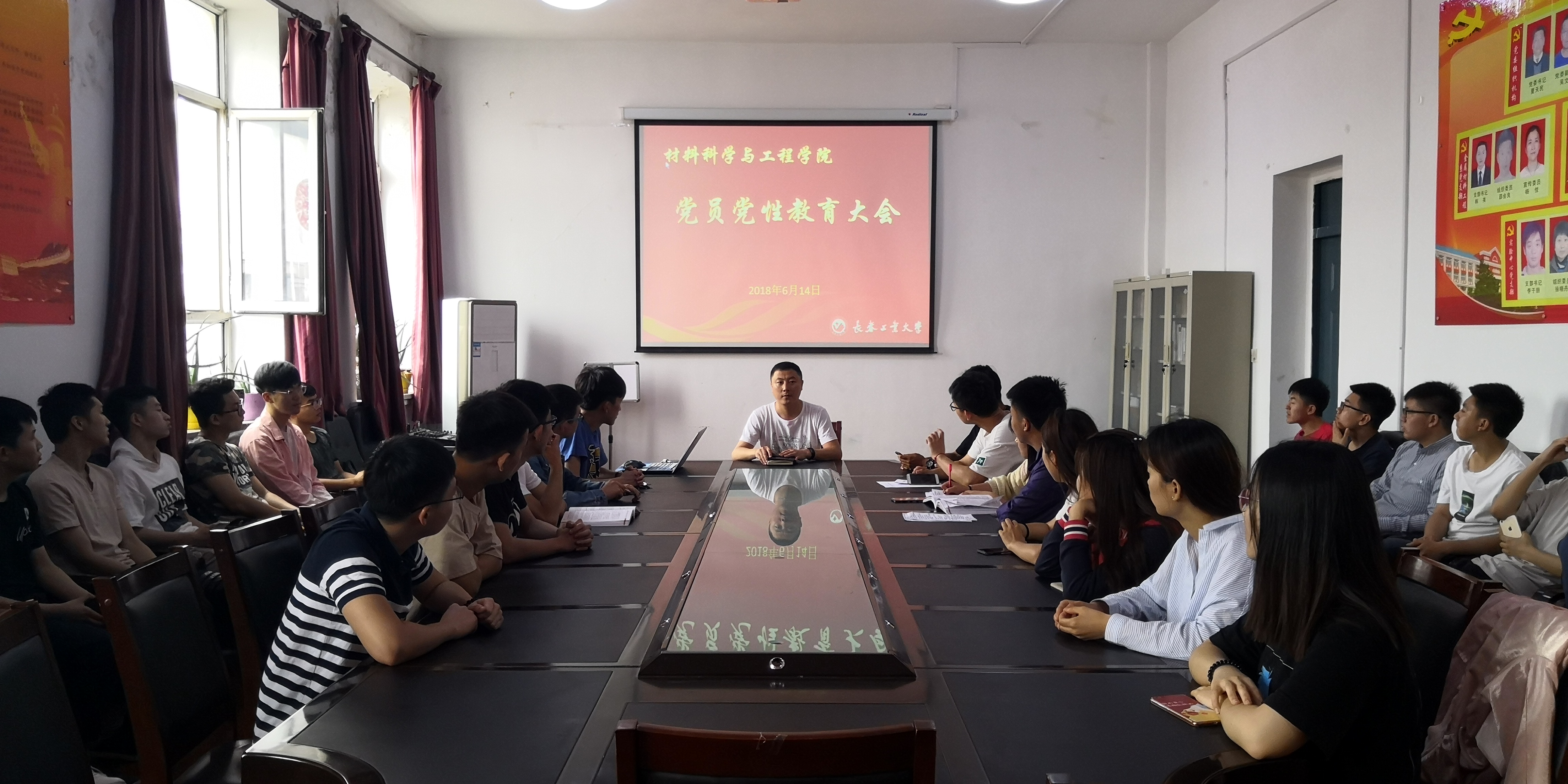 五楼会议室召开了2015级党员党性教育大会,由邹绍岩主持,2015级全体党员、预备党员、积极分子参加会议。