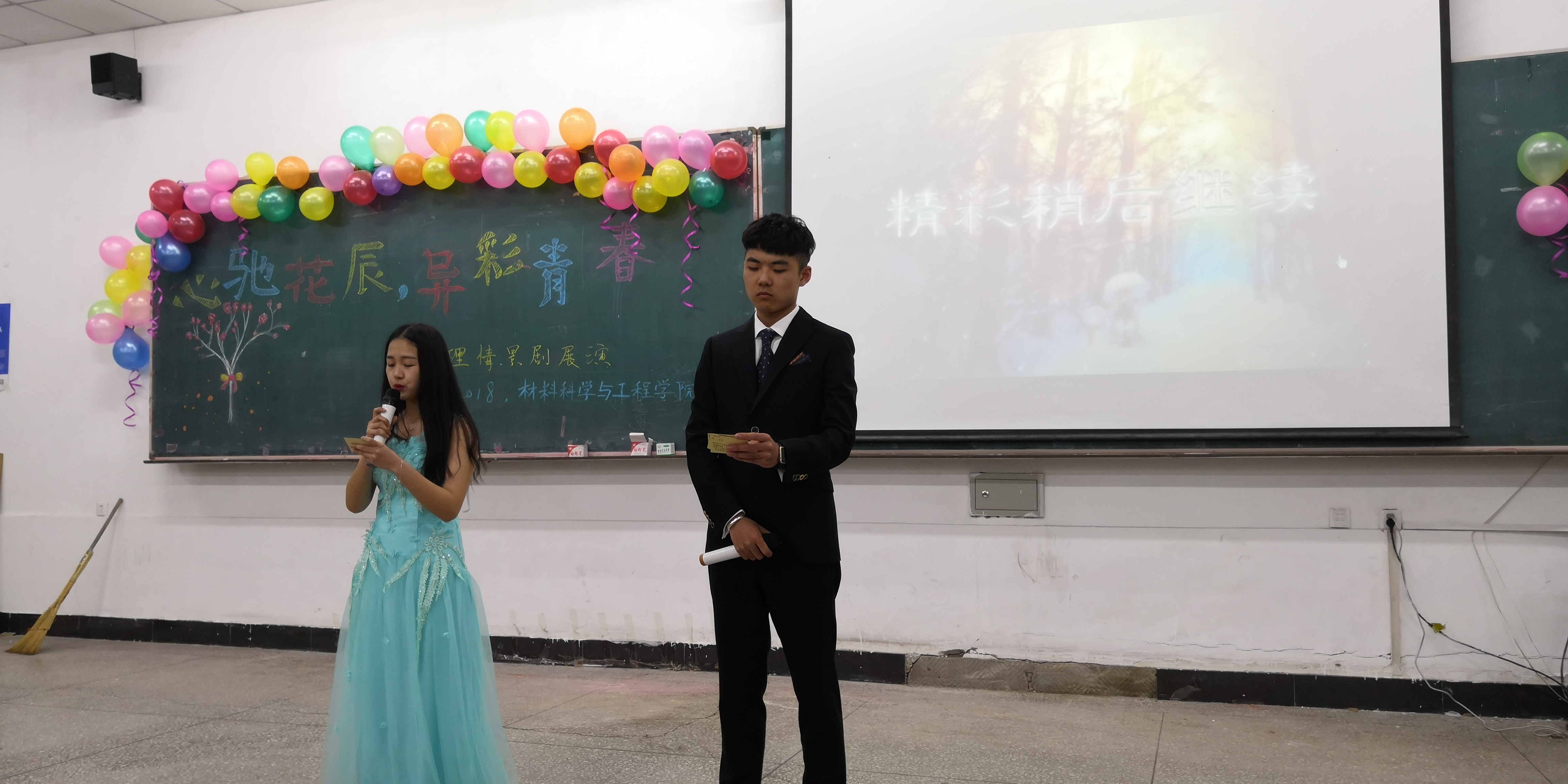 (信息部鲁阳)2018年4月1日晚6:00,高清无码 “心驰花辰,异彩青春”大学生心理健康心理剧展演于北湖西阶102教室成功举办,出席本次活动的有材料学院张晓君老师、牟琼坤老师、学生会主席张仟、社联主席钟泽建、秘书长才佳靓、艺术团团长金喜德、学习部部长韩竟俞、新媒体中心主任刘昭希以及16级部分学生干部、17级全体学生。