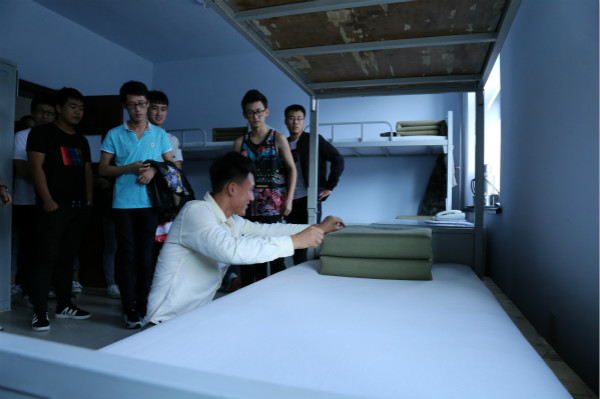 在团委书记邹绍岩的带领下,活动当天大家着装整齐、意气风发的来到部队。在部队指导员的引领下,三下乡志愿者们参观了战士们的日常生活和工作环境。整齐标准的内务让现场的志愿者感受到了官兵们的严谨作风。大家纷纷表示会在今后的学习和工作中以官兵们的标准严格要求,努力提高自己。接下来,志愿者们参观了“红九连”荣誉室,详细了解不对的发展历史和光辉战斗历程。硝烟岁月已经远去,但历史不会忘记。九连革命先烈用鲜血书写的光辉历史无声地震撼着我们。