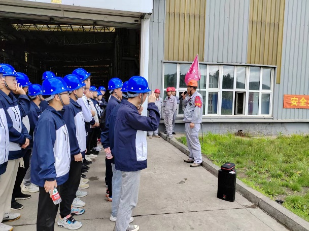在吉林建龙阶梯教室,公司人事处张继武处长、技术中心蒋宪勋处长以及安全处、后勤处、冷轧厂和热轧厂相关负责人对同学们的到来表示欢迎。蒋处长向同学们介绍了吉林建龙的发展历史、主要产品和未来规划,安全处相关负责人为同学们进行了车间实习实践安全教育。