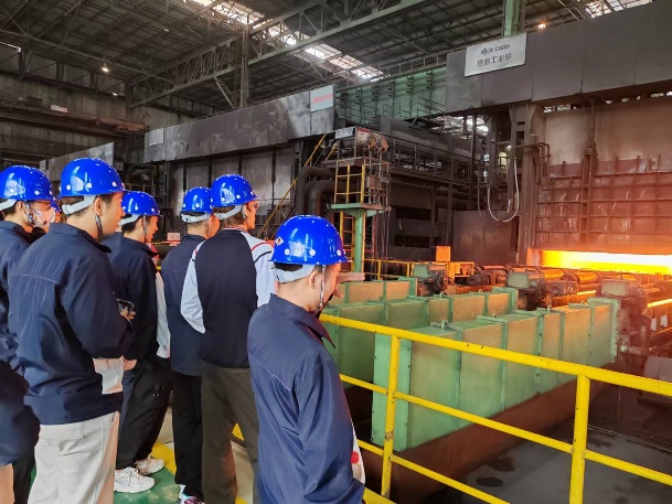 培训结束后,蒋处长和车间相关负责人带领同学们前往冷轧厂和热轧厂进行参观实习,近距离感受了冷轧、镀锌、彩涂、高温粗轧、精轧、层流冷却等在学校无法见到的生产场景。参观过程中,同学们就钢铁冶炼、轧制、自动控制、设备参数等相关问题与车间工程师进行了充分交流。