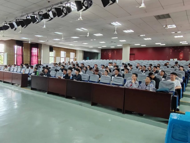 参观结束后,吉林建龙安排学院师生前往职工餐厅就餐。午餐后,技术中心工程师,学校22届毕业研究生高原为同学们做了《吉林建龙钢铁有限责任公司轧钢工艺及设备简介》的报告,向同学们介绍了建龙钢铁的配套能力、产线组成、产品工艺路线和主要生产设备,同学们受益匪浅。