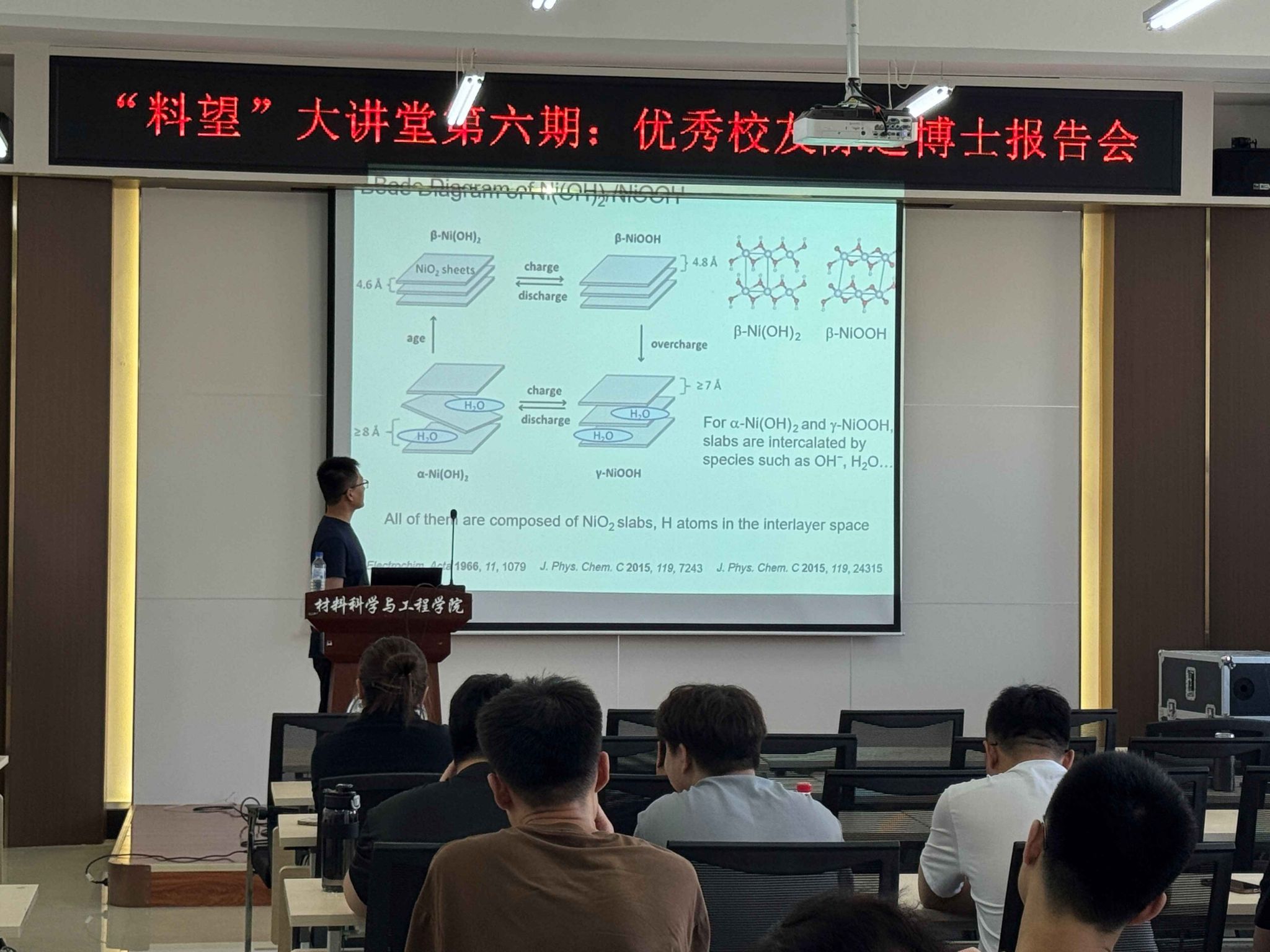 “料望”大讲堂系列学术报告第六期在材料楼417会议室举行。特邀优秀校友陈达博士作题为“铁掺杂促进NiOOHβ→γ相变—OER活性增强的关键”学术报告。报告会由副院长赵健主持,学院领导、部分青年教师、研究生参加了报告会。