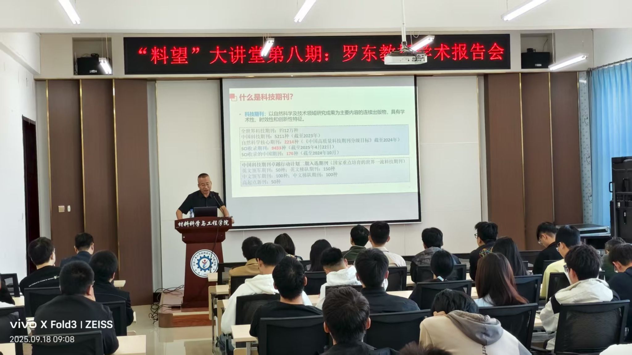 “料望”大讲堂系列学术报告活动特邀中国科学院金属研究所学报文献中心主任、总编辑罗东教授作—英文科技论文写作与投稿及常见问题专题报告。报告会由韩英院长主持,学院领导、部分青年教师、研究生参加了报告会。